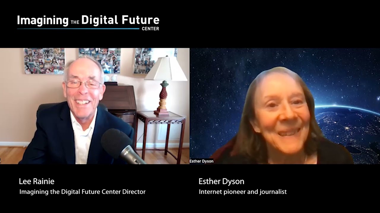 Pioneering tech journalist and Internet pioneer Esther Dyson, founding chair of ICANN (the Internet Corporation for Assigned Names and Numbers), shares strategies to consider as artificial intelligence advances in reach and impact. These comments were part of an interview with Lee Rainie, director of the Imagining the Digital Future Center. (Feb. 19, 2024)